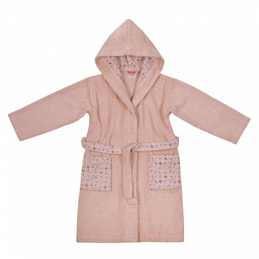 Kinder-Bademantel aus flauschiger Frottierware mit 2-lagiger Kapuze mit Gürtel und 2 aufgesetzten Taschen