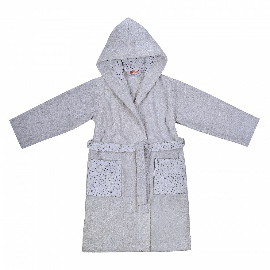 Sterne hellgrau Kinder-Bademantel Größe 92-140