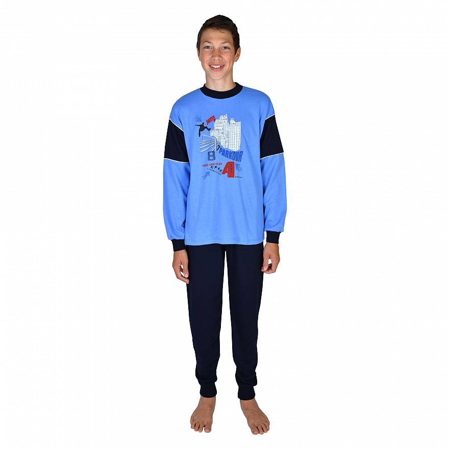 Kn. Interlock Schlafanzug Parcour ciel Gr.116-176
