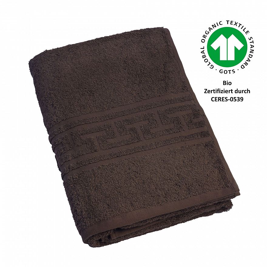 Luxus-Qualität, 520 g/m², 100% Baumwolle aus kontrolliert biologischem Anbau, Jacquard-Bordüre „Mäander“, trocknerbeständig, verzieht nicht nach dem Waschen, 60° waschbar, GOTS zertifiziert
