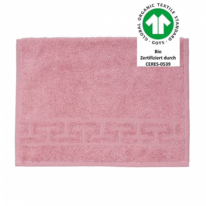 Luxus-Qualität, 520 g/m², 100% Baumwolle aus kontrolliert biologischem Anbau, Jacquard-Bordüre „Mäander“, trocknerbeständig, verzieht nicht nach dem Waschen, 60° waschbar, GOTS zertifiziert