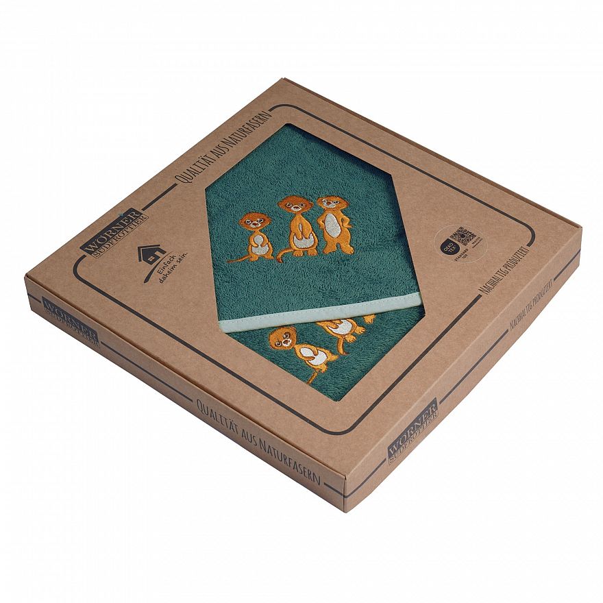 Geschenk-Karton, bestehend aus Kapuzen-Badetuch mit Stickerei 80 x 80 cm (---91) und Waschhandschuh mit Stickerei (---90)