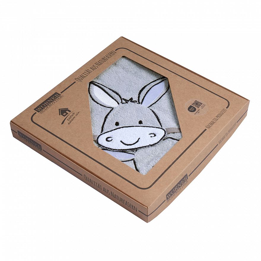 Geschenk-Karton, bestehend aus Kapuzen-Badetuch mit Stickerei 80 x 80 cm (---91) und Waschhandschuh mit Stickerei (---90)