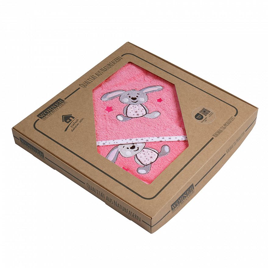 Geschenk-Karton, bestehend aus Kapuzen-Badetuch mit Stickerei 80 x 80 cm (---91) und Waschhandschuh mit Stickerei (---90)